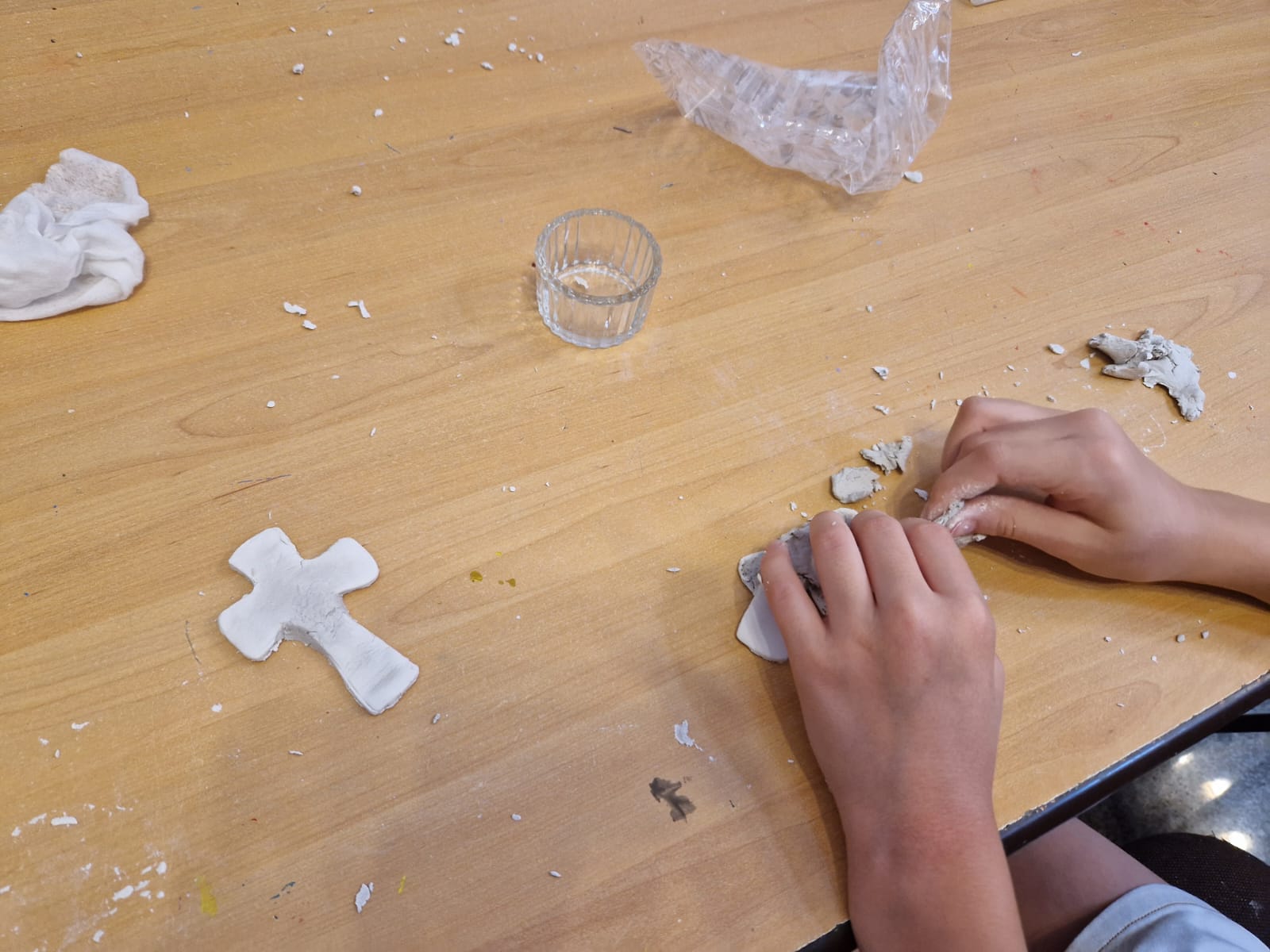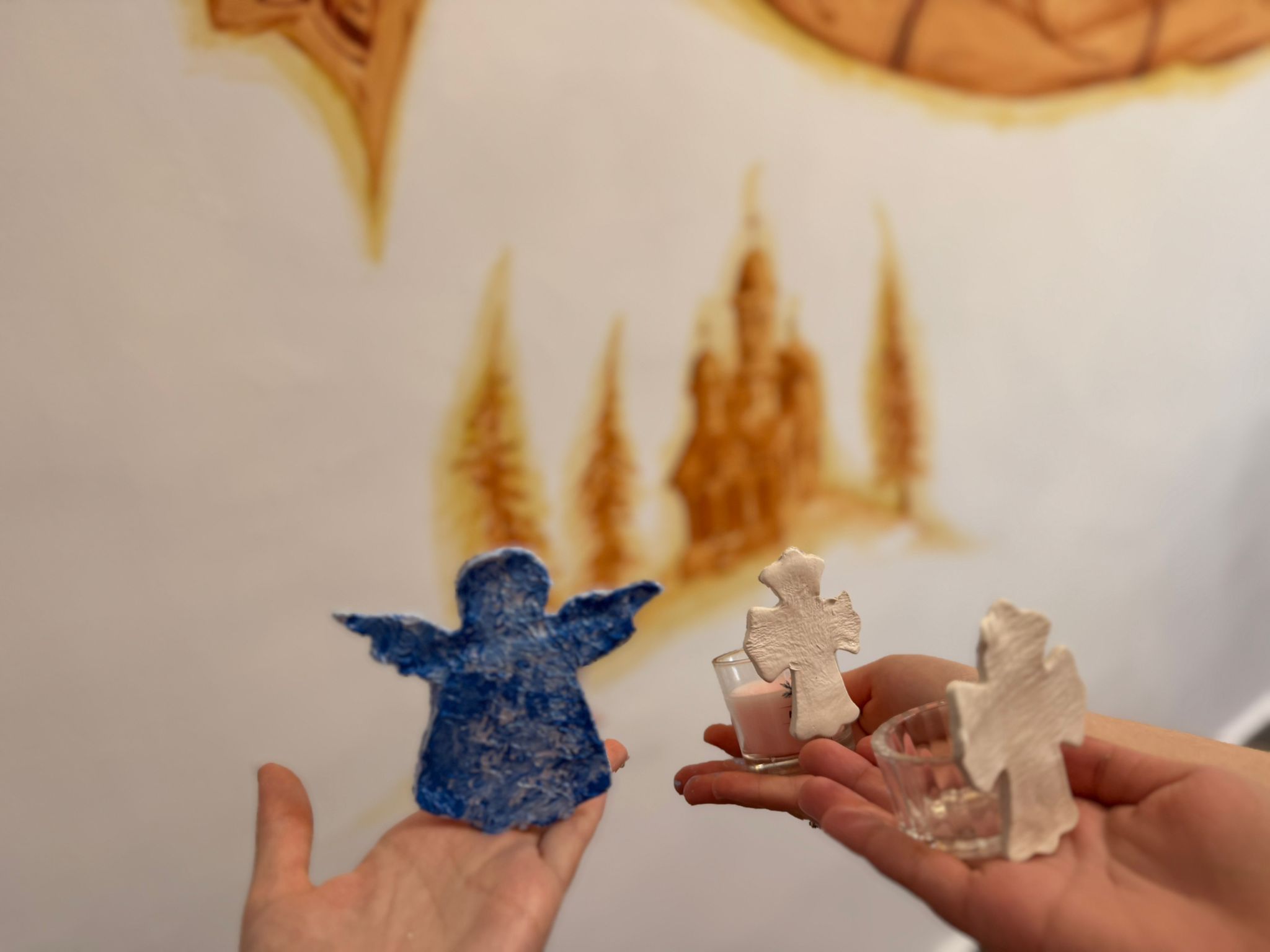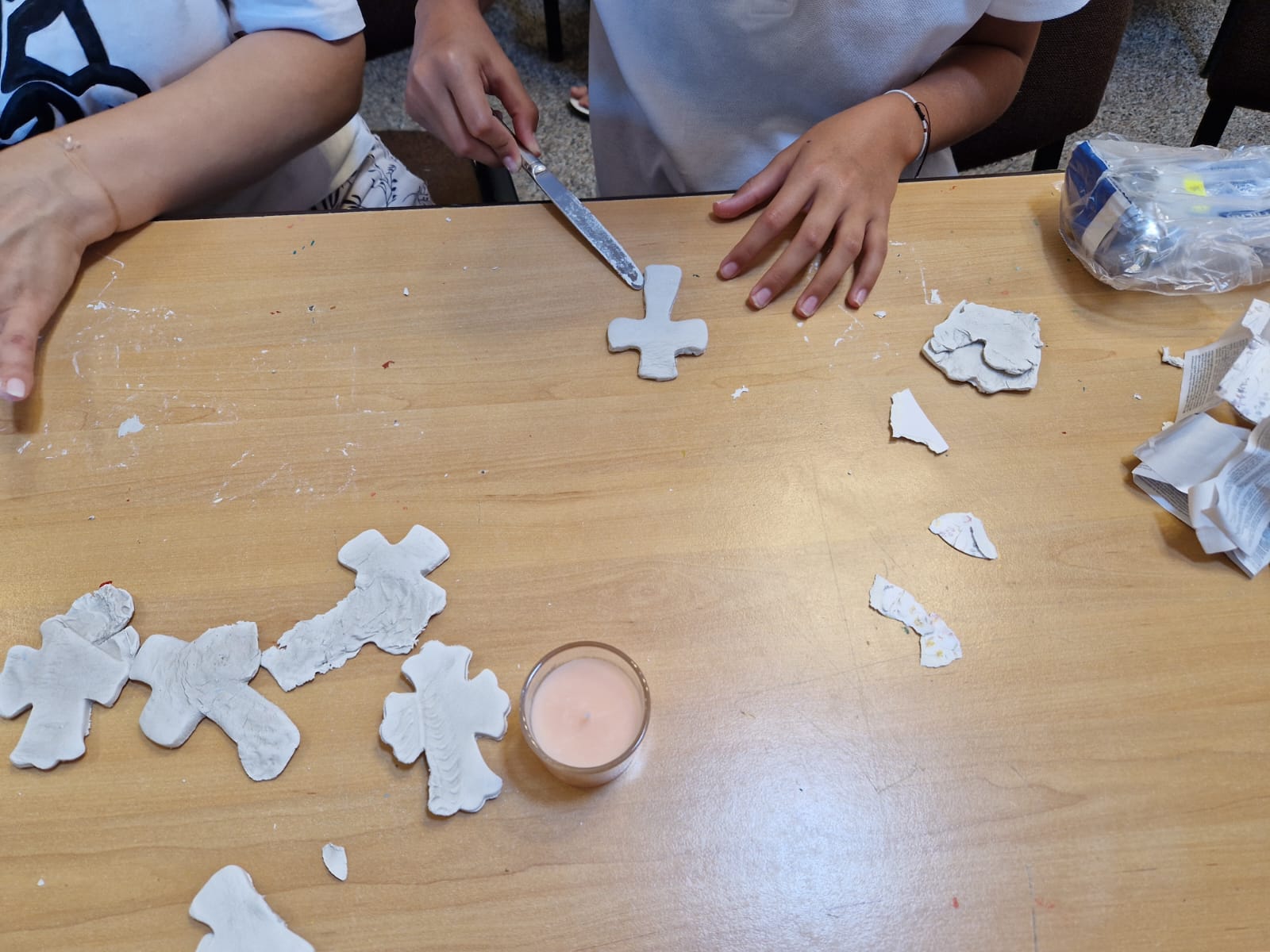 Cu binecuvântarea Părintelui Protopop Aurel Berbec, am scris și fila trei din cartea noastră de vacanță. Nu întâmplător am ales acest atelier, el este strâns legat de activitatea de marți. La atelierul de astăzi am lucrat cu drag suporturi de lumânări personalizate. Copiii și-au dorit atât de mult să modeleze din lut îngerași și cruciulițe, pentru a le păstra acasă în colțișorul de rugăciune.