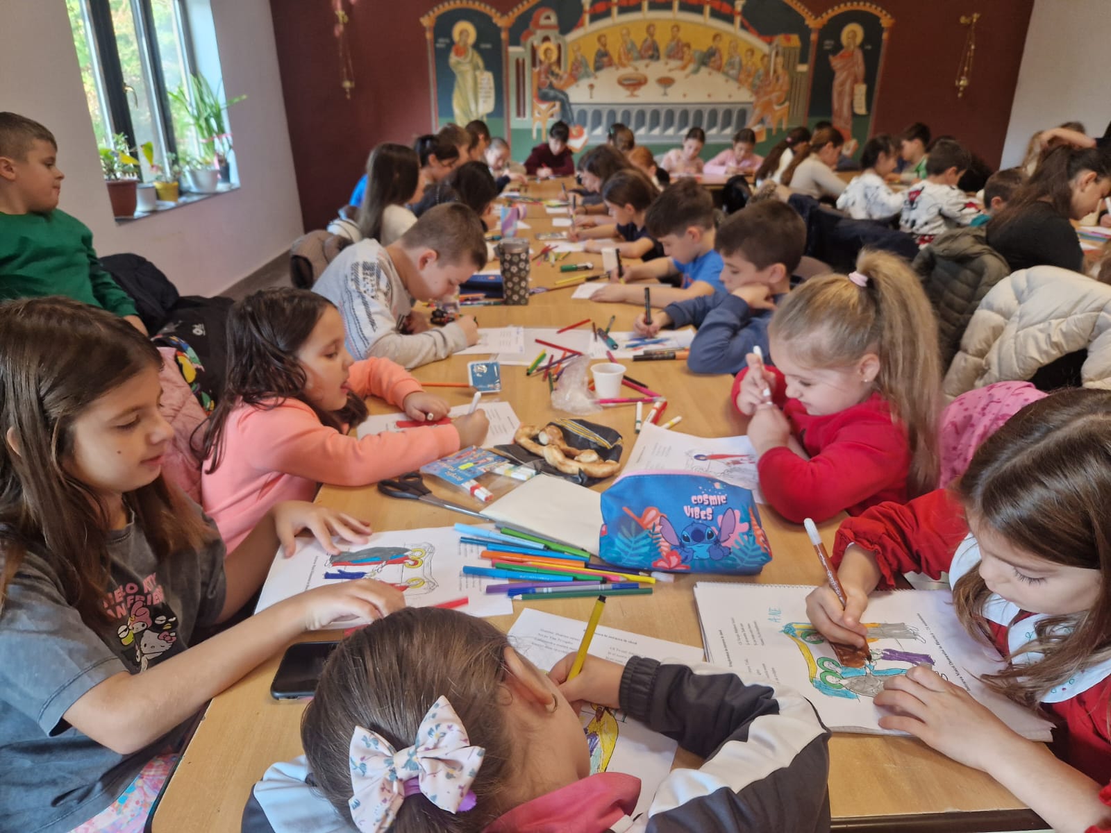 După rugăciunea de început, le-am vorbit copiilor despre culoarea galbenă, despre spicele de grâu, galbenul soarelui, galbenul din tricolorul nostru.