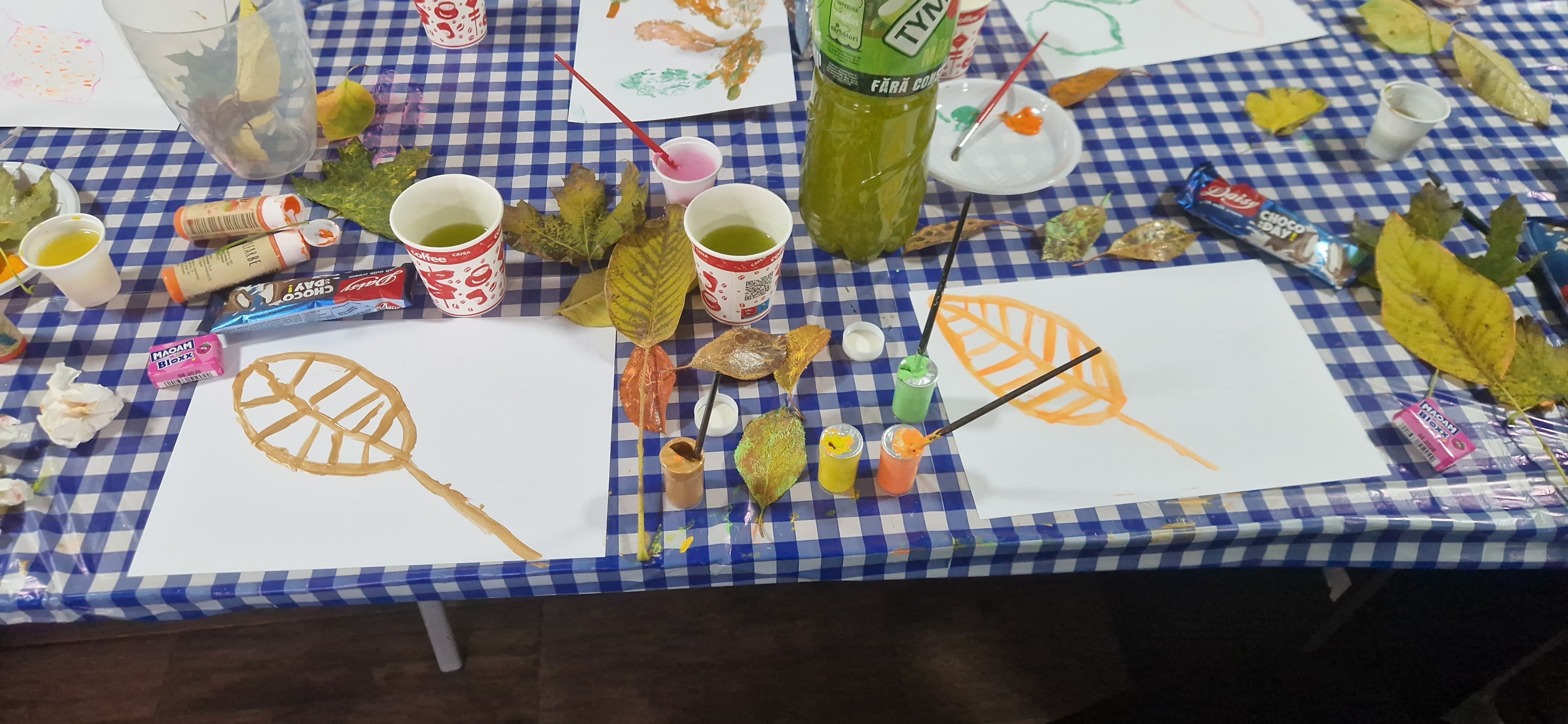 Activitatea s-a desfășurat sub semnul culorii, al jocului și al creativității. Copiii au pictat frunze de toamnă folosind o tehnică aparte – „punct cu punct” – o metodă care implică aplicarea culorii sub formă de mici puncte, realizând astfel un efect vizual deosebit. Fiecare frunză a fost atent decorată în nuanțe calde de galben, portocaliu, roșu și maro, apoi aplicată pe coli de hârtie pentru a forma adevărate tablouri de sezon. Rezultatul: lucrări impresionante, pline de personalitate, care pot fi numite, fără exagerare, mici opere de artă.