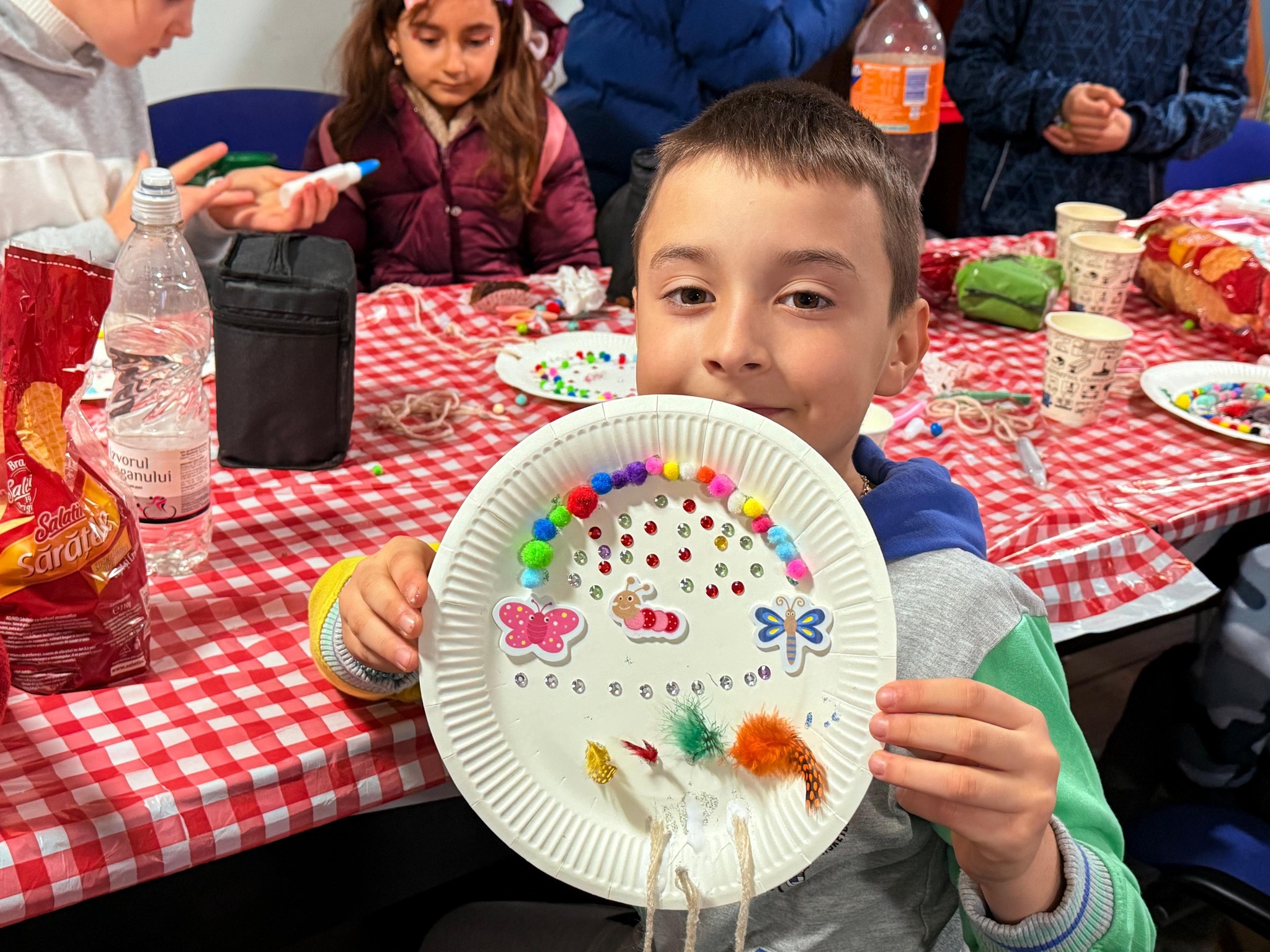 La această activitate au participat 45 de copii, care, într-o atmosferă caldă și prietenoasă, au realizat ornamente decorative pentru casă, sub forma unor creații realizate manual, asemănătoare unor „dreamcatchers”, adaptate într-o formă ludică și creativă. Acestea au fost confecționate din cercuri decorative din carton, stickere, pompoane, autocolante cu strasuri, și alte elemente decorative, fiind gândite ca obiecte menite să aducă bucurie, culoare și armonie în spațiul familial.