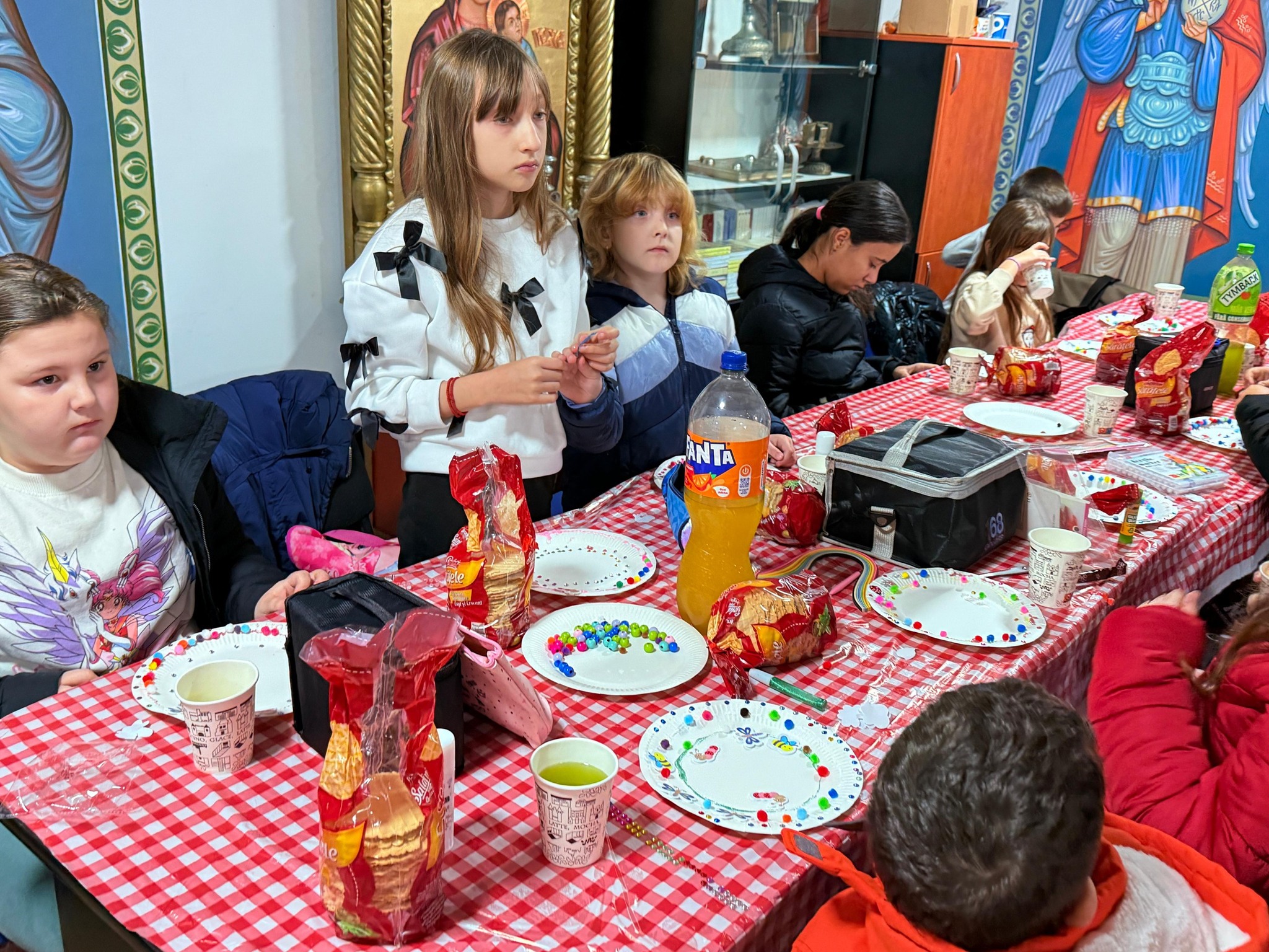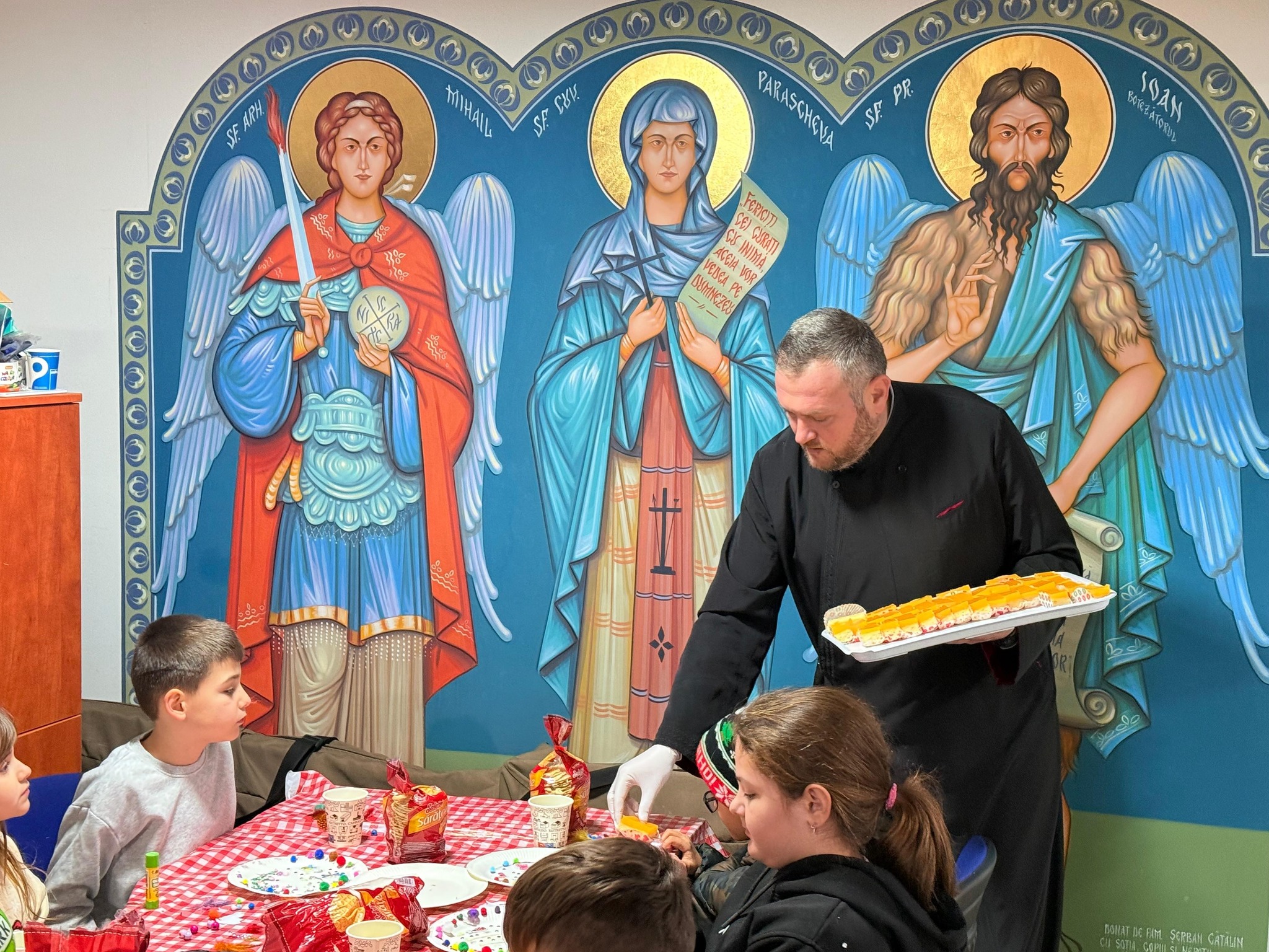Pe lângă momentele de creație și joacă, cei mici s-au bucurat de prăjituri de casă pregătite de doamna Mihaela Cristina Fotin, gustări sărate și suc, oferite din partea parohiei.