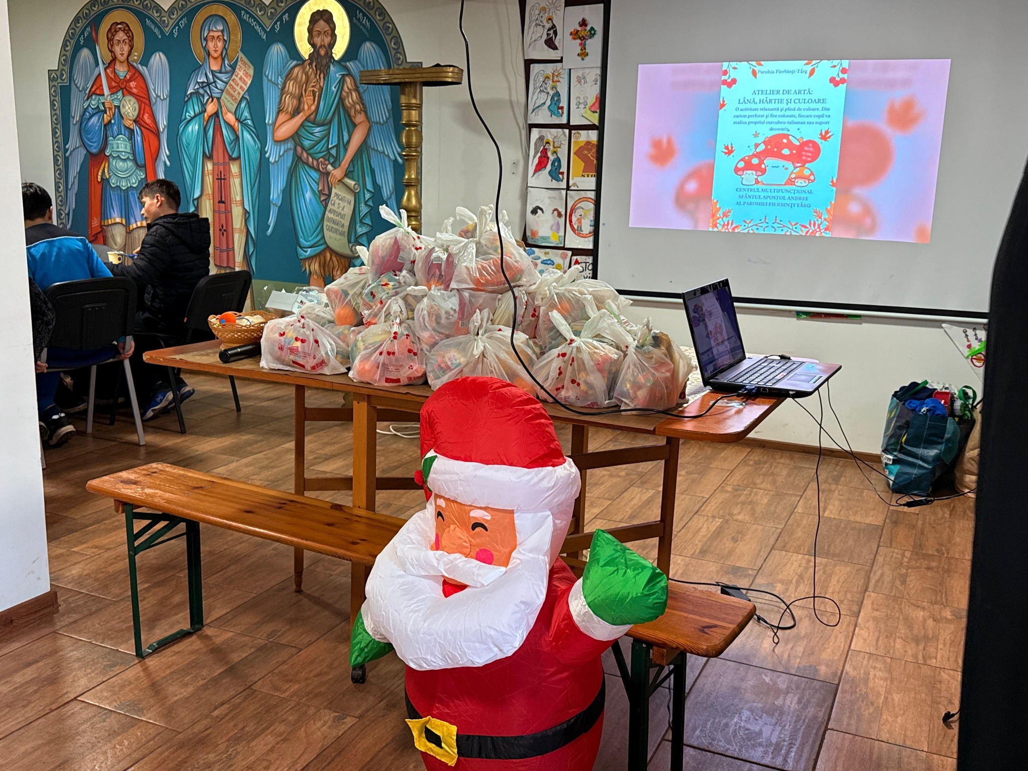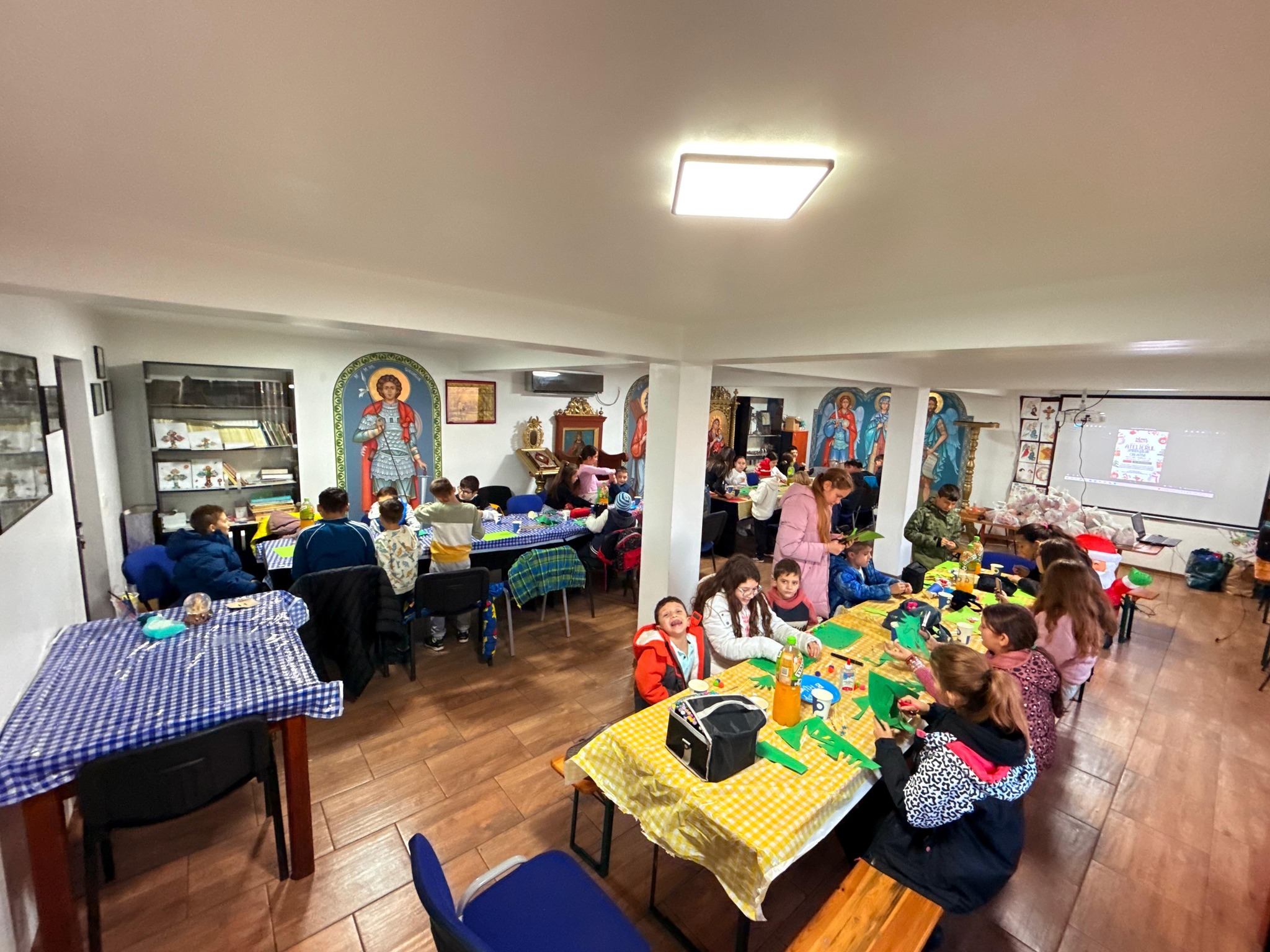 Atelierul a constat în realizarea de felicitări și ornamente de Crăciun, copiii dând dovadă de multă imaginație, îndemânare și entuziasm. Cu ajutorul hârtiei colorate, sclipiciului, culorilor și materialelor decorative, cei mici au creat lucrări unice, fiecare obiect reflectând bucuria, puritatea și sinceritatea sufletului de copil. Creativitatea lor a fost stimulată într-un mod liber și educativ, oferindu-le ocazia să exprime, prin artă, emoția așteptării Nașterii Mântuitorului.