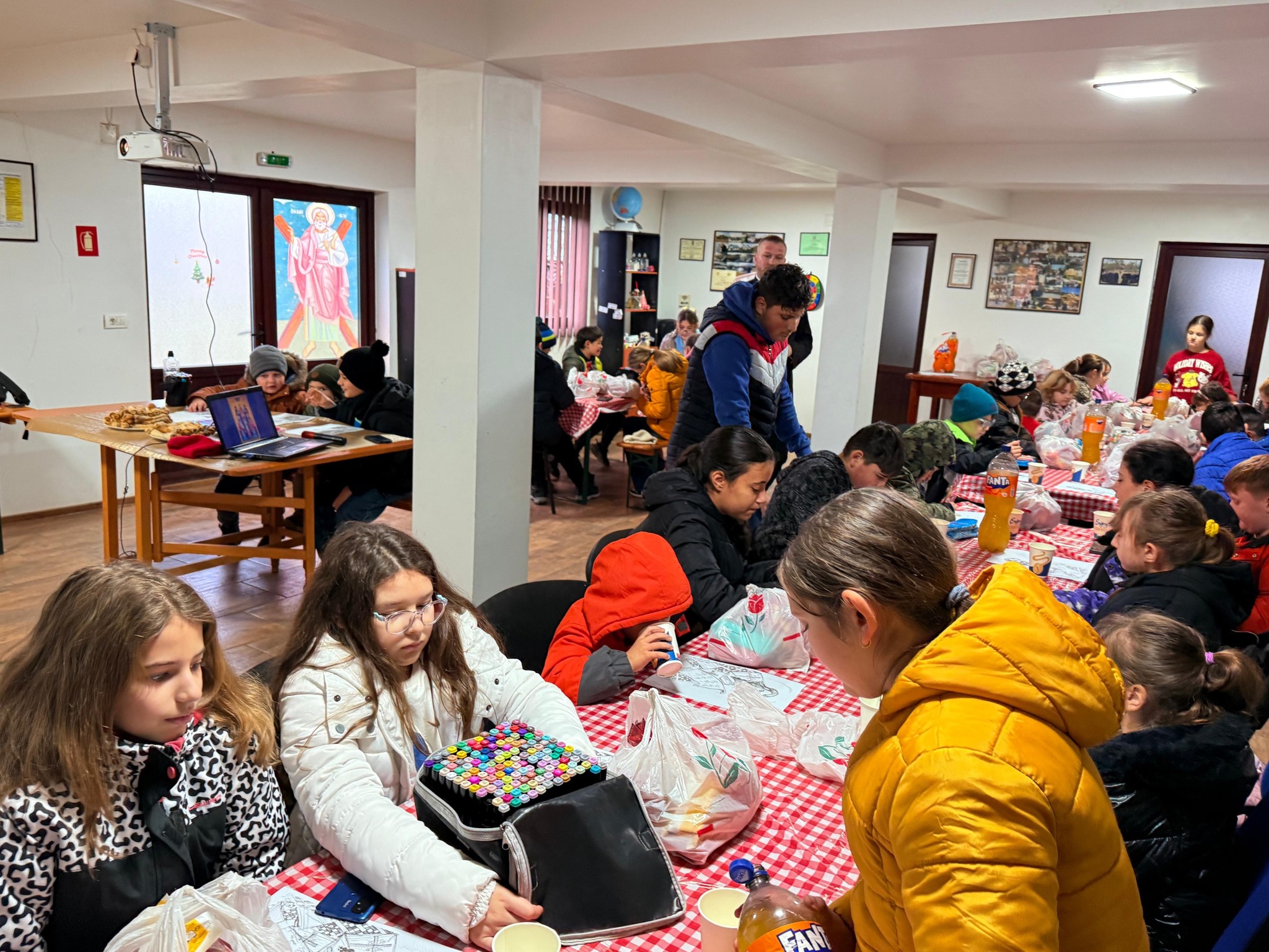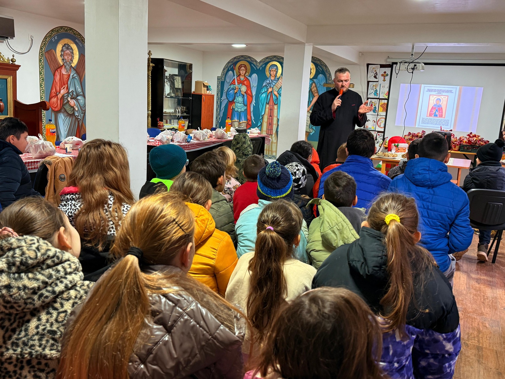 Întâlnirea s-a desfășurat într-o atmosferă caldă și plină de bucurie, iar la final copiii au primit daruri constând în dulciuri și au fost invitați să se bucure de clătite de casă și suc, ca semn al comuniunii și al dragostei împărtășite în cadrul comunității parohiale.