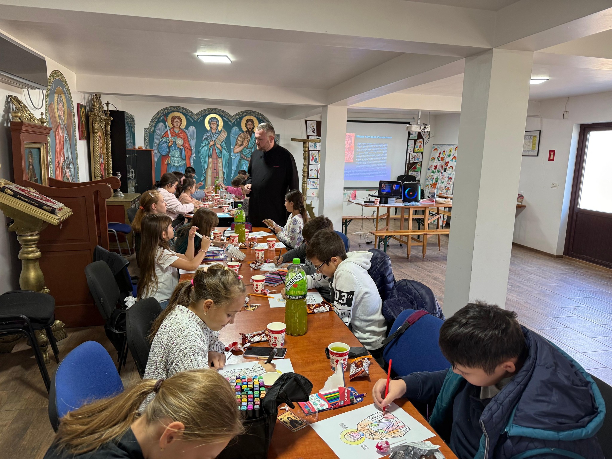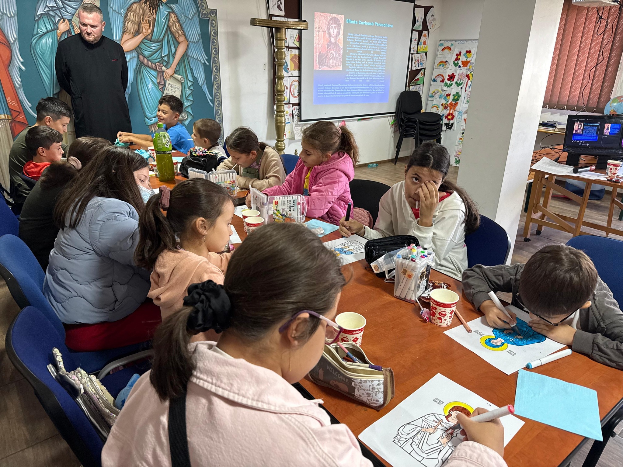 În cadrul catehezei, cei 30 de copii au vizionat un material PowerPoint și un film animat despre viața Cuvioasei, învățând cum bunătatea, credința și smerenia pot face dintr-un copil simplu un adevărat sfânt.