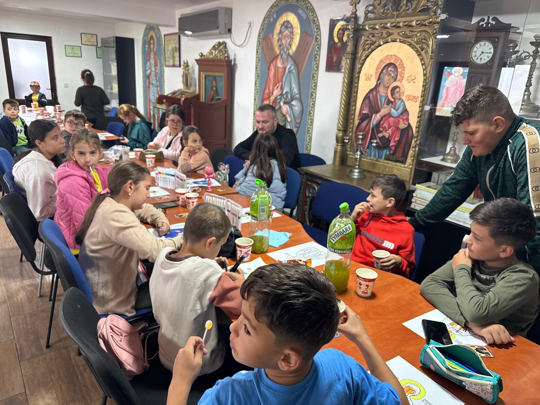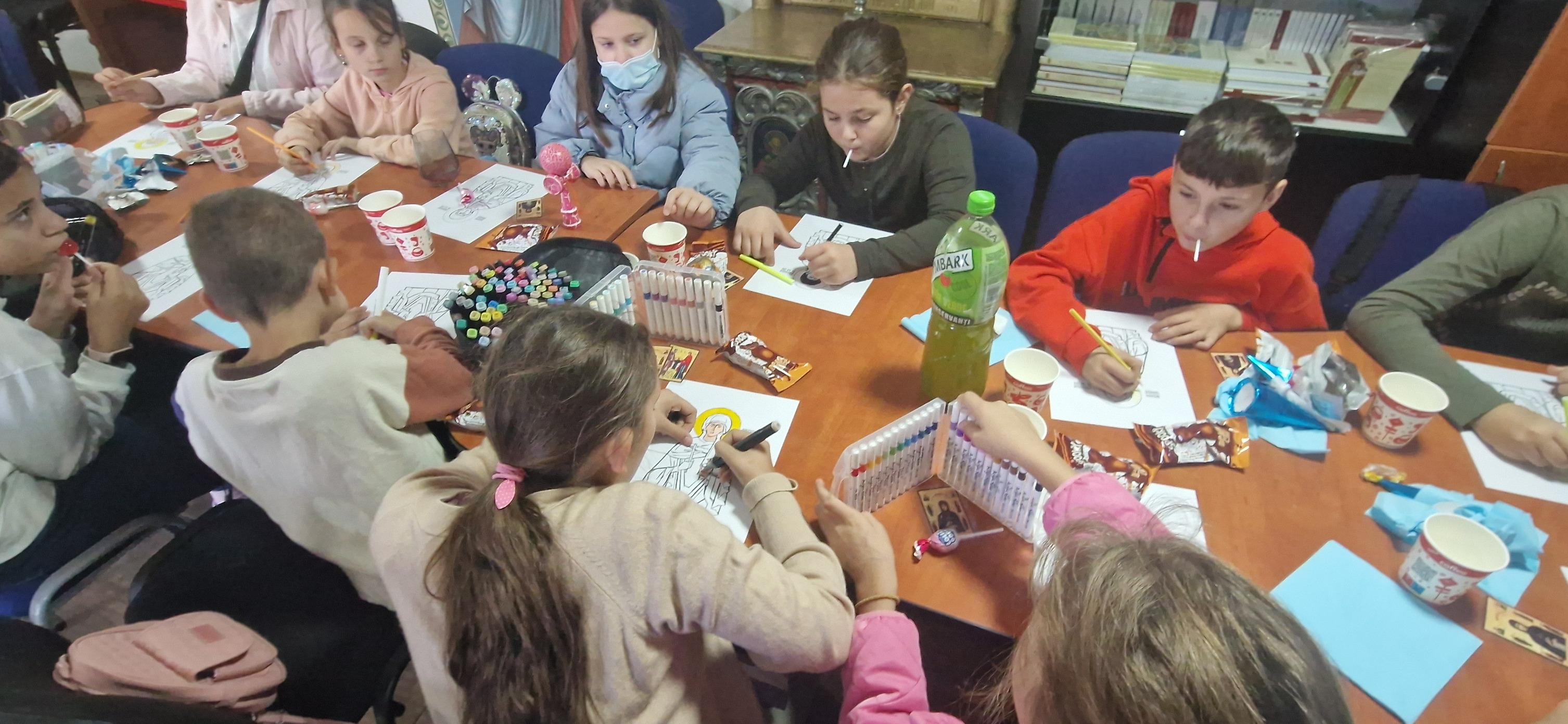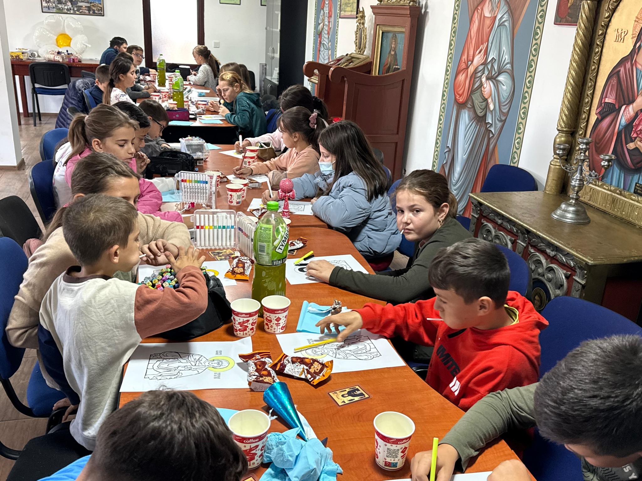 După aceea, fiecare copil a colorat o fișă cu chipul blând al Sfintei Parascheva – o activitate prin care au putut apropia inima lor de inima unei sfinte care iubește cu adevărat copiii.