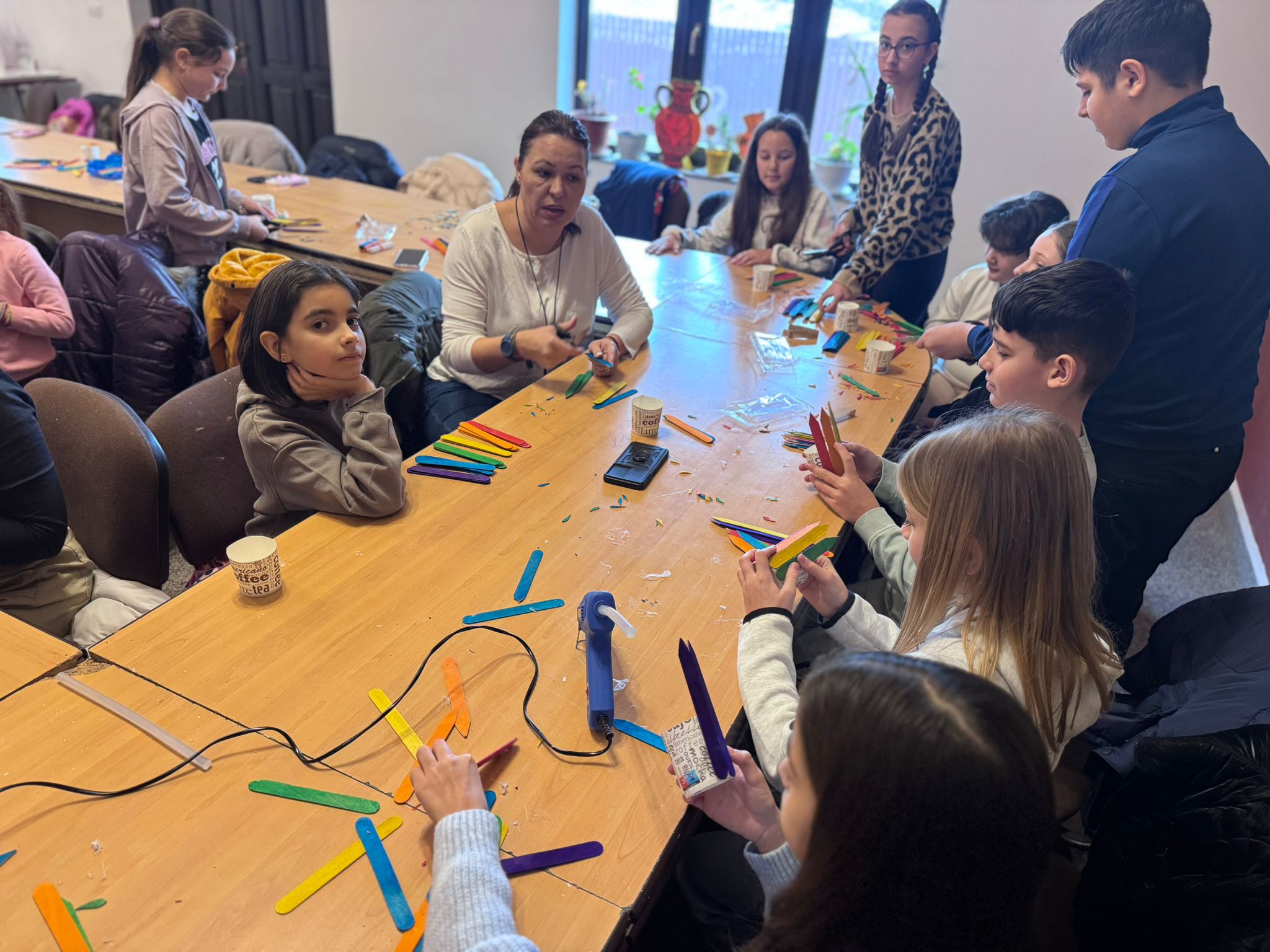 În partea a doua a activității, copiii participanți au lucrat un atelier de creație, unde și-au realizat propriul suport pentru culori. Lucrul manual nu este ușor, dar reprezintă o mare realizare pentru fiecare copil, mai ales pentru ca obiectele au fost făcute chiar de mânuțele lor.